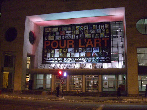 Hier soir nous avons décidé de profiter des températures clémentes (-13 C) pour aller visiter le musée des Beaux Arts de Montréal. Jusqu'à fin janvier, l'entrée du musée est gratuite tous les jours et on a accès à toutes les salles d'expos permanentes et temporaires... De plus, les mercredis, jeudis et vendredis, le musée est ouvert jusqu'à 21h, ce qui permet d'aller s'instruire après le travail! Pour finir, nous y sommes allés car j'avais vu sur leur site internet qu'il y avait une visite commentée gratuite de la collection d'art contemporain à 18h!