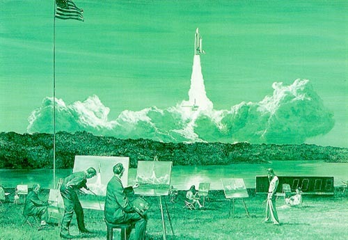 des peintres américains comme Mark Tansey, la peinture préférée de Nico, qui ne rend rien sur cette photo comparé à la réalité du format gigantesque...